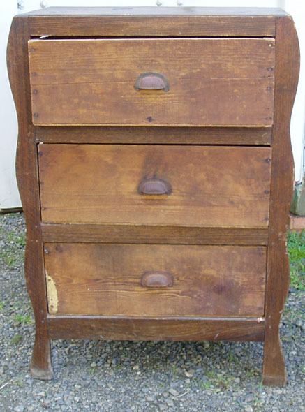 An original piece from the earlier part of the 20th Century, a set of Depression Draws, so called because in the 1930s people were thrifty and made their furniture out of crates from oil and kerosene boxes among many other things. These ones have Berger on the inside of the draws, so the draws are made from early paint tin crates...